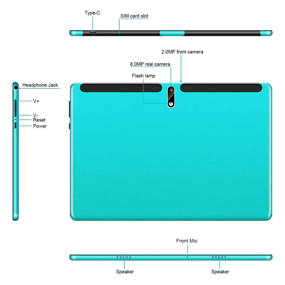 2.5D Steel Screen 10.1 inch Tablet PC Android 9.0 8GB+128GB ROM Ten Core 4G Phone Call Bluetooth Wi